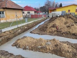 - Zemné výkopové práce – vykopávka rýh základových pásov v zmysle projektovej dokumentácie, osadenie výstuže základových pásov, betonáž,